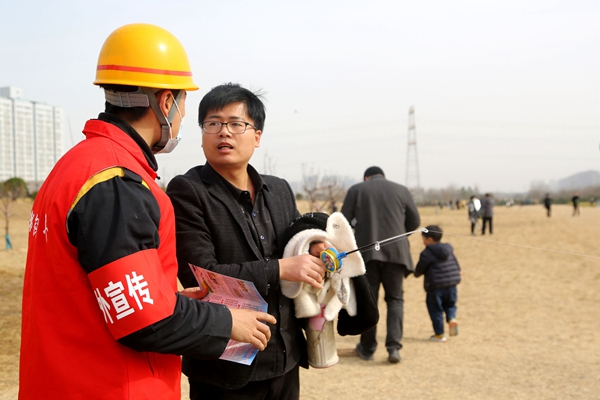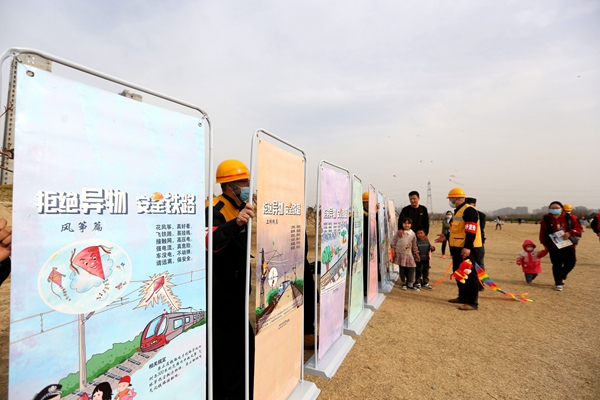 3月5日,中国铁路郑州局集团有限公司郑州供电段的路外安全宣传小分队来到郑州市紫辰路铁路线路旁的管城体育公园进行路外安全宣传。郑州供电车间副主任李建杰和他的工友们在发放宣传彩页的同时,一边给正在放风筝的市民宣传引导不要在铁路沿线放风筝:“放风筝是春天很好的运动项目,但是铁路沿线有高压线,稍不注意风筝就会挂到高压线上,就有可能导致接触网跳闸,一旦跳闸,就会影响火车的正点运行。”