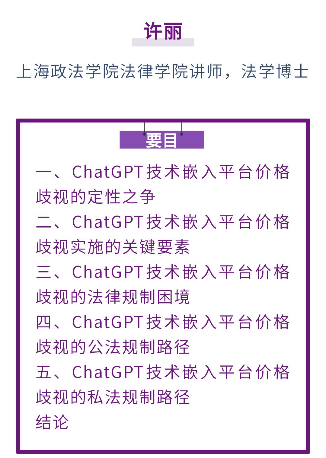 许丽|ChatGPT技术嵌入平台消费歧视的公私之治原创 许丽 轻触阅读原文
