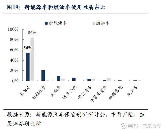 新能源车险理赔压力有待化解,出险频率、案均赔款显著高于传统燃油车。相较传 统燃油车,新能源车出险率较高系以下因素所致:1.新能源车行驶噪音比较小,电控系 统安全性还有待改善,增加碰撞风险;2.新能源车驾驶方式与传统的驾驶习惯不匹配, 新能源车驾驶速度、起步速度高于预期,强制的动力回收和单踏板模式在提高续航的同 时带来不确定性和安全隐患;3.车辆用途多为营运车辆,占比明显高于整体市场中营运 车辆的占比;4.车主以年轻群体为主,驾驶经验相对缺乏。5.新能源车更高的工时费、 配件费和不成熟的维修定损标准导致维修费用较燃油车较高,进而抬升其案均赔款。 据中再产险统计,从车损险来看,各种使用性质的新能源车出险频率几乎均高于传 统燃油车,其中新能源车中占比最高的家用车出险率高达 30%,显著高于燃油车 19%的 数据。新能源车案均赔款整体高于传统燃油车,家用车达到 7201 元,高出燃油车近 600 元。从三者险来看,新能源车所有类型出险频率均远高于传统燃油车,其中货车类数据 差距尤其显著,差距达到 8%。由于三者险负责赔付受到侵害的第三方,无论是传统燃 油车还是新能源车对第三方侵害的差别不显著,除营业货车外(系所运载货物种类不同所致)案均赔款差别不大。