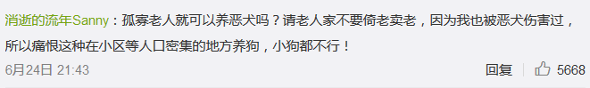 事件曝光后,网友对于苏女士所说的“与狗相依为命”的说法并不认同,狗主人最起码要做到的是不能让狗伤人。