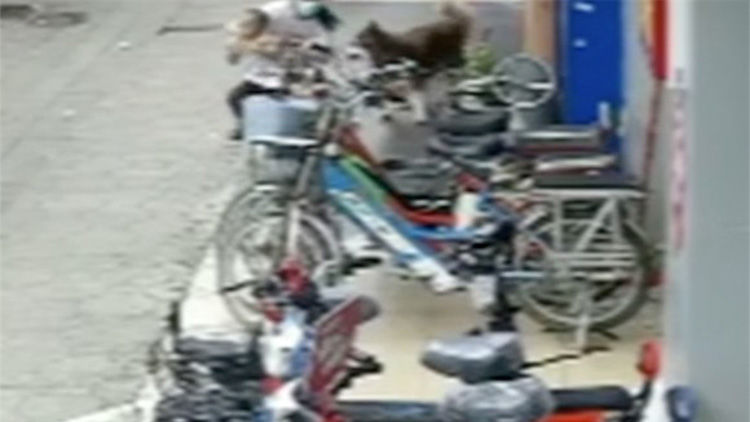 近日,广东东莞一名三岁男童在店铺门口玩耍时,被一条路过的大狗追咬。狗主人发现后跑来将孩子抱起,孩子的脚仍被大狗又咬伤。