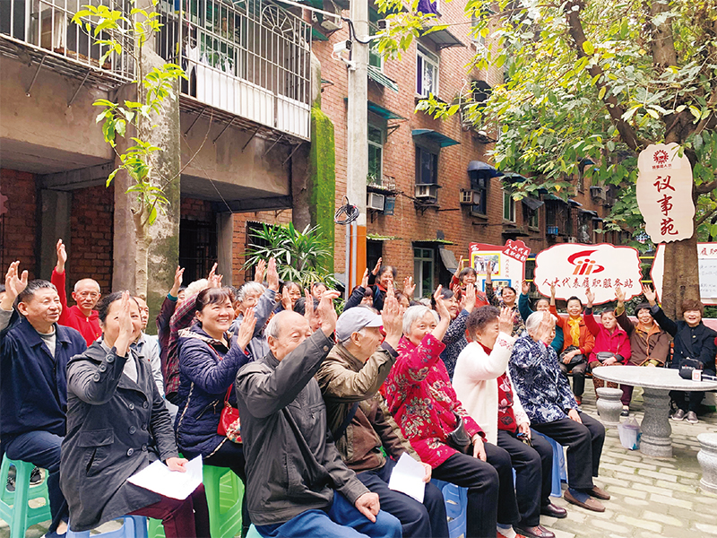 图为2022年3月2日,重庆市沙坪坝区基层立法联系点在人大代表履职服务站、特钢贤人坊议事苑引导石井坡街道居民表决垃圾分类管理公约。 全国人大常委会法工委重庆市沙坪坝区基层立法联系点供图 冯琴/摄