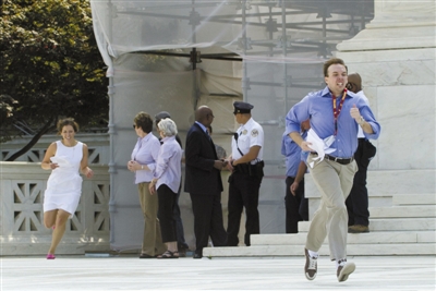 28日,美国最高法院门前,首先拿到判决书的媒体记者拼命奔跑,想抢着第一个报道,但因为判决书太长,CNN忙中报错。