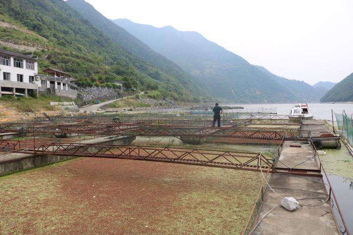 千岛湖污染防治的重点之一,就是水体富营养化。而传统的网箱养殖方式,极易污染水质,增加水环境负担。为有效减少养鱼饲料对湖水的污染,2017年,宅上自然村决定将所有网箱全部清退“上岸”。