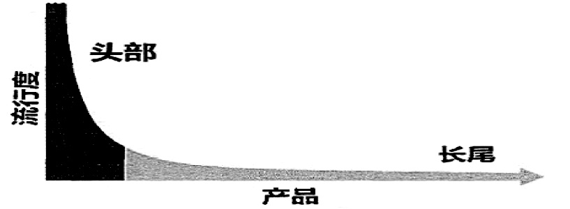 2004年美国《连线》杂志知名主编克里斯·安德森首次提出“长尾理论”,该理论自产生之初便被认为开启了互联网经济的全新商业模式。所谓长尾理论是指:由于成本和效率的原因,当商品储存和展示的场地及渠道足够宽广,商品生产成本急剧下降以至于个人都可以进行生产,并且商品的销售成本也足够低时,几乎任何以前看似需求极低的产品,只要有人卖,就会有人买。这些需求和销量不高的产品所占据的共同市场的份额,可以和主流产品的市场份额相比,或者甚至更大,具体表述如下图所示: