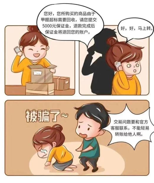通过非法渠道购买购物网站的买家信息及快递信息后,冒充购物网站客服打电话给受害人,称其购买物品质量有问题,可给予退款补偿。随即提供二维码诱导受害人扫描,受害人便根据提示输入银行卡、验证码等信息,最终银行卡的钱便被转走。或者以系统升级导致交易异常、订单失效为由,将冻结受害人账户资金,让受害人将资金转入指定的安全账户从而实施诈骗。