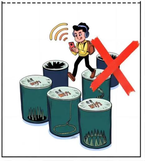 公共场所中的一些免密WiFi可能实为不法分子专门搭设的虚假“钓鱼”陷阱;使用一些不明“蹭网”APP时,因此需提高警惕,避免不法分子利用风险WiFi漏洞造成我们的损失。