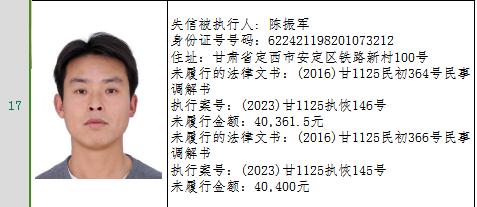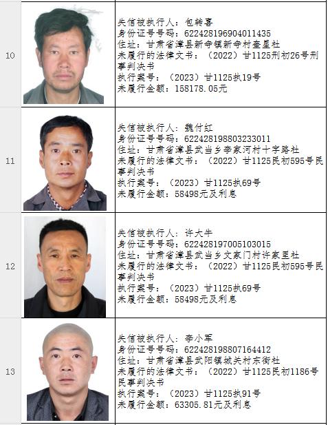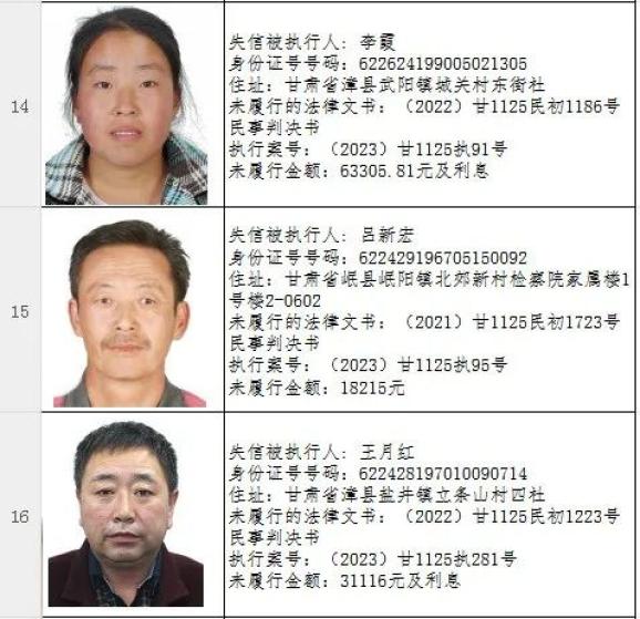 原标题:《漳县人民法院2024年失信被执行人名单发布(第二期)》