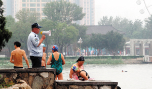 天津北方网讯:随着公园进入免费时代,人们再也不用购票入园,每天进入大大小小公园游玩的市民比以前成倍增加,可有一些人对自身安全、公园安全提示和管理人员的劝阻置若罔闻,执着地跳入公园的湖中游野泳。记者在采访中发现,水上公园东湖每天清晨私自下湖游泳的人数足有五六百人之多。一旦这些游野泳的人发生溺水死亡等事故,责任该由谁承担?免费向市民开放的公园的湖里允许游泳吗?有关各方对此各有说法,正被本市人大常委会审议的《天津市公园条例(草案)》,是否应加入公园禁止游泳的条款,也引发了争论。