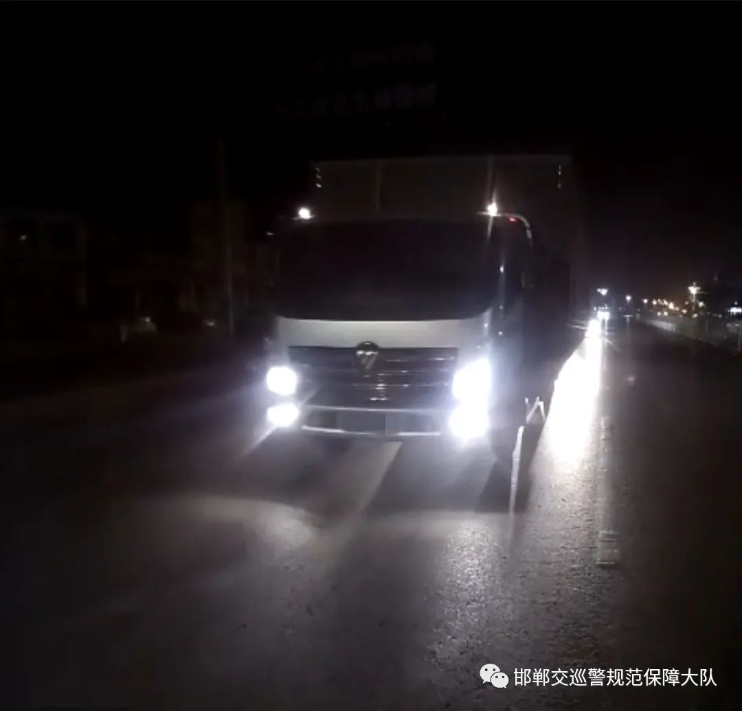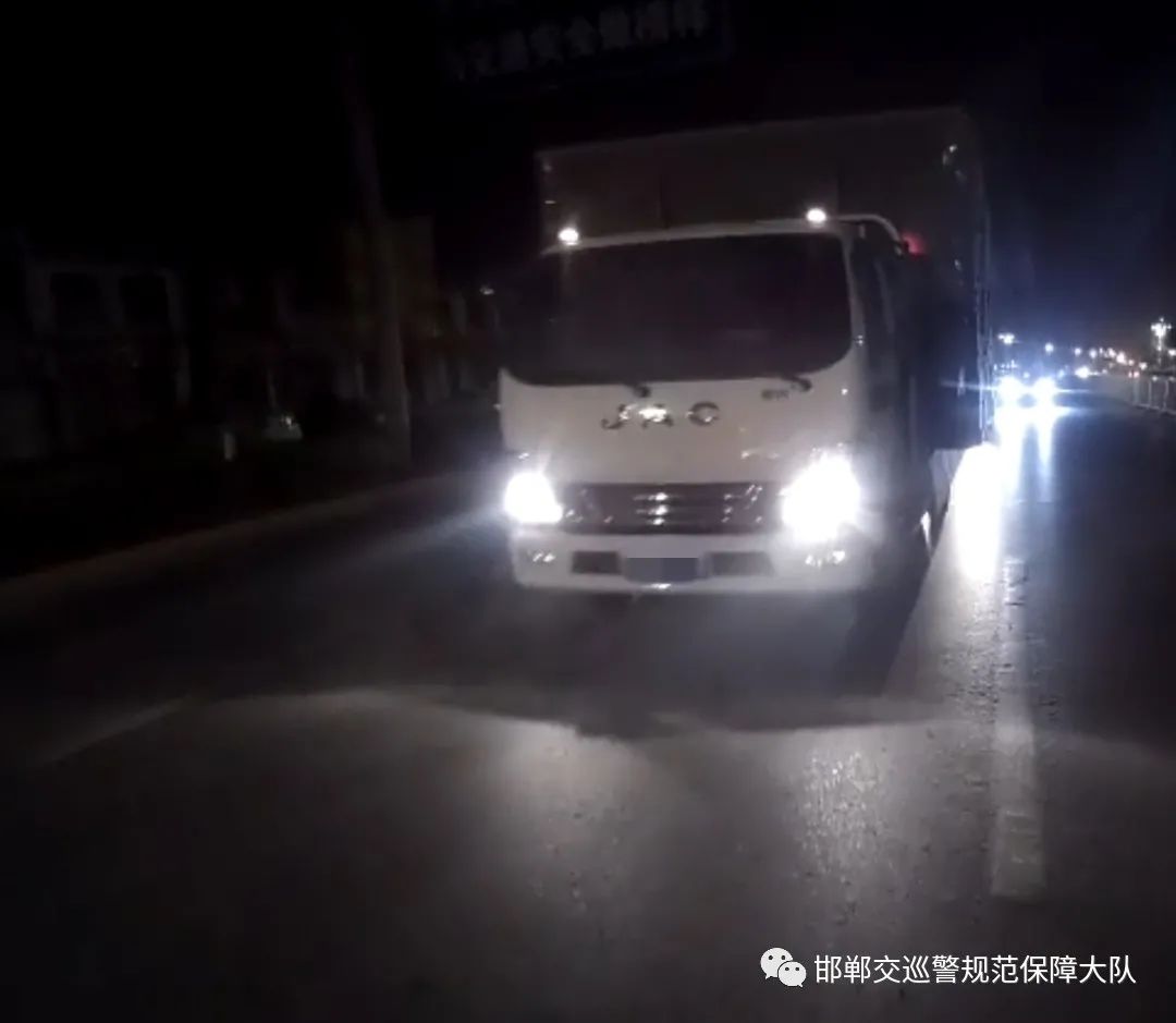 4月9日1点56分,邯郸市交巡警支队规范保障大队二中队在东环路与和平路口北100米处对交通违法行为进行治理时,发现有四辆车都存在车辆载货超过规定范围,于是让驾驶员们将车辆停至路边接受进一步检查。
