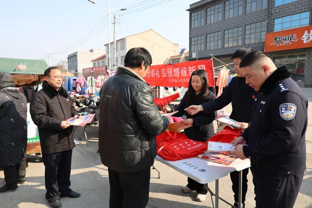 临近春节,很多在外打工未婚青年男女都早早地回到村里,为相亲做准备。为弘扬传统美德,构建幸福和谐家庭,1月29日,兰考县法院堌阳法庭走进农村大集开展“抵制高价彩礼 弘扬婚嫁新风”宣传活动。