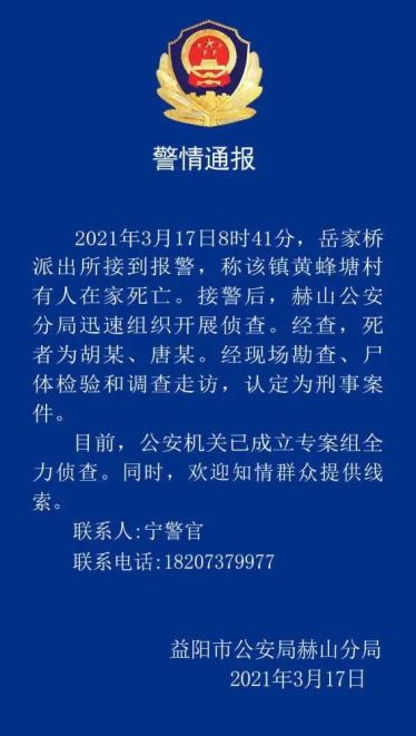 103.湖南益阳发生刑案两人死于家中,警方正全力侦查。(头条新闻)