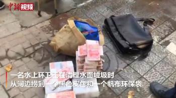 134.海南海口一名环卫工从河里打捞出巨额现金,警方介入调查。(中国新闻网)