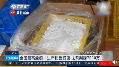 79.全国最高金额!制售假药经营者被判赔7010万元。(江苏新闻)