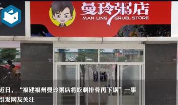 77.福州“曼玲粥店”被曝回收剩排骨熬粥,已被外卖平台下架。(央视新闻)