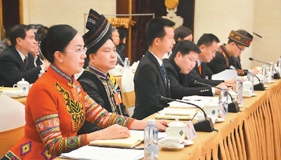 3月7日,广西代表团召开全体会议和小组会议,审议宪法修正案草案,代表们踊跃发言,认真聆听,仔细记录,热烈讨论。