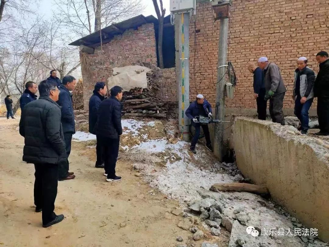 11月28日下午,康乐县法院干警在流川乡古城村强制执行一起相邻权纠纷案件。