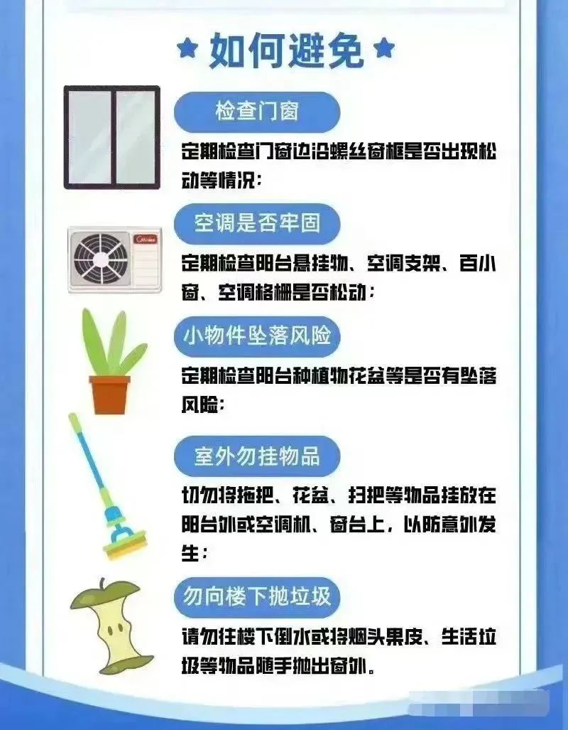 在此花小法呼吁大家注意以下几点:提高自我保护意识及法律责任意识,不高空抛投杂物,对周边高空抛物行为进行监督,发现情况及时制止;同时,远离楼房及其他建筑物,避免在楼檐下行走停留,警惕高空坠冰落雪及大风刮落物,防范意外。停车时留意屋顶是否有积冰积雪,防止车辆被高空坠物砸伤造成财产损失。单位、商户、住户要及时清理房檐、窗台处可能形成坠落的物品,做好安全提示,全力消除安全隐患。