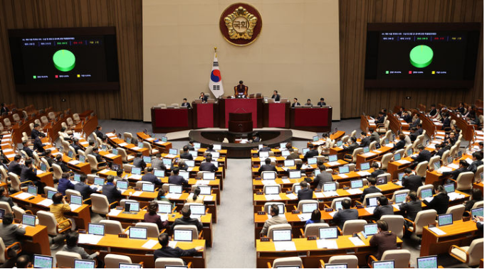 9日下午,韩国国会召开全体会议表决通过了有关禁食狗肉法案 图源:韩媒