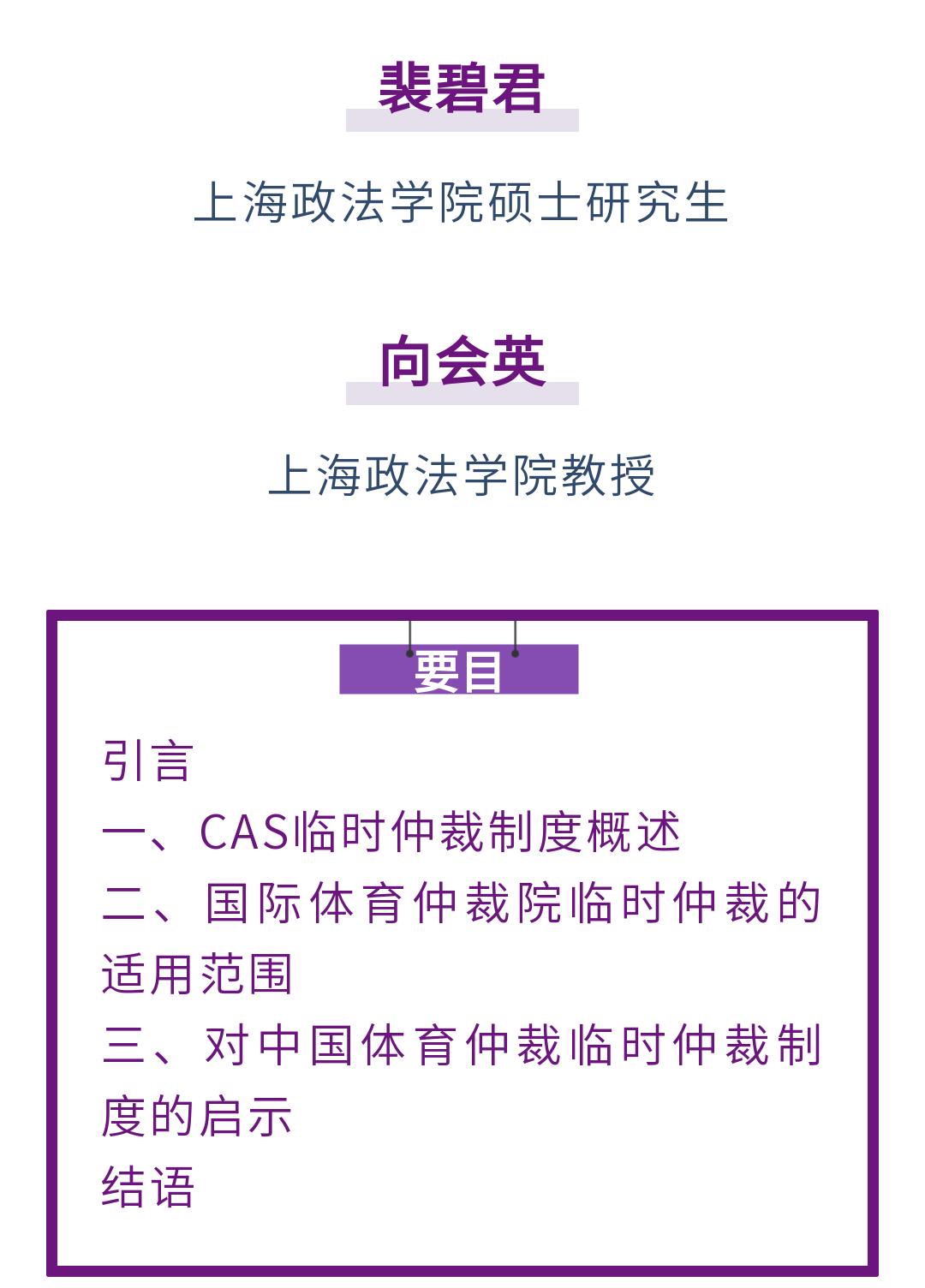 原标题:《裴碧君 向会英|国际体育仲裁院临时仲裁制度探析及对中国体育临时仲裁的启示》