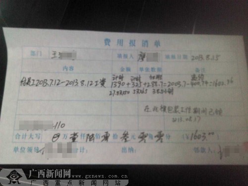 爆料者姓王,是一名广西大学大二的学生,他告诉记者,除了他以外还四位同学也被南宁市兆祺包装公司无故开除,还被克扣了工资。“我们是从7月12日进去工作的,开始的时候是打杂工,每天50块钱。后来,我们五个人被分为一组,连续五天按量做1500个盒子,每天65块钱。”广西大学大二学生王同学告诉记者,他们一直很努力工作,在被开除的那一天他们还按时按量完成了1500个盒子的任务。8月12日晚,其中一名学生接到该公司主管的电话,告知他们已经被辞退,理由是他们没完成规定的任务。对于这个辞退理由,他们都无法接受。