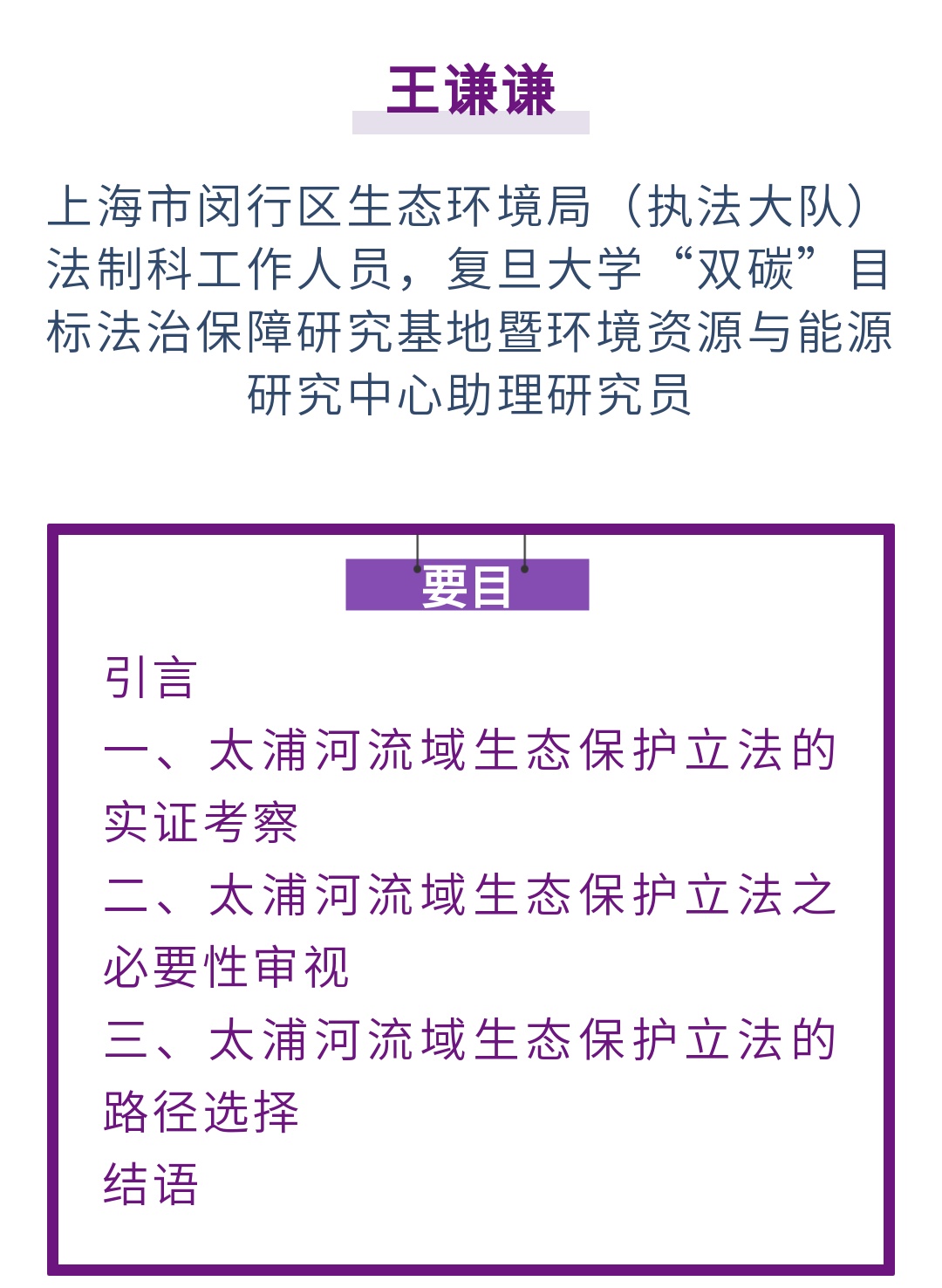 王谦谦|“长三角一体化”背景下生态保护立法路径选择——以太浦河流域生态保护立法为例