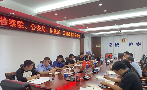 2023年8月,安徽省蒙城县检察院联合县公安局、医保局、卫健委召开案件会商会,进行可疑线索的商榷和移交。