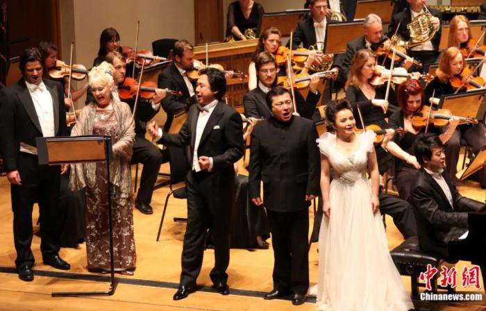 2012年4月,伦敦书展中国主宾国开幕音乐会在伦敦卡多甘音乐厅举行,中英两国歌唱家同台演唱《长江之歌》。魏群 摄