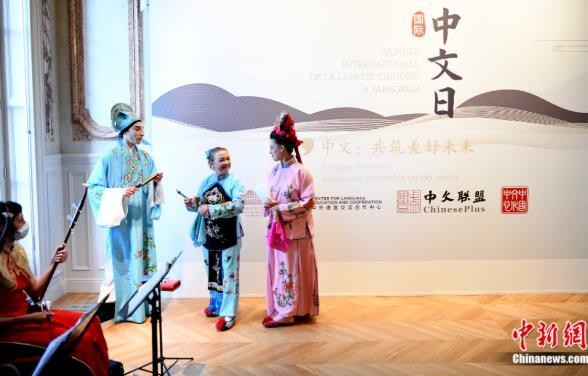 2022年4月21日,“2022巴黎•国际中文日”活动在巴黎中国文化中心举行,法国的中文爱好者在活动现场用中文表演中国传统曲艺节目。李洋 摄