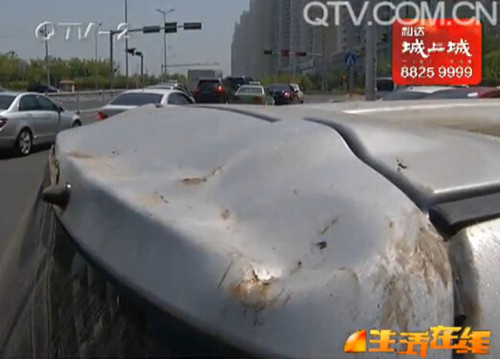 车顶、车玻璃、车前盖,每辆车的受损情况都不相同。车主们回忆,事情发生在六号的下午六点钟左右。谁也想不到,等信号灯的时间里,居然中了招。