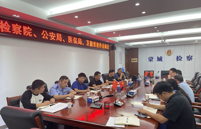 2023年8月,安徽省蒙城县检察院联合县公安局、医保局、卫健委召开案件会商会,进行可疑线索的商榷和移交。
