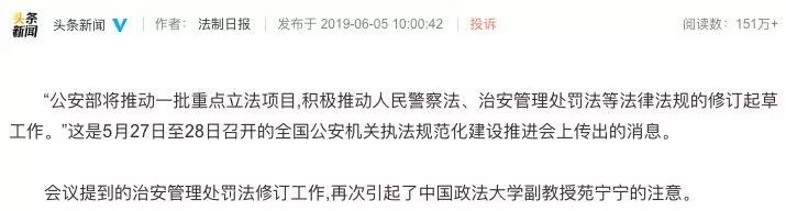早前,公安部公布了《中华人民共和国治安管理处罚法(修订公开征求意见稿)》,公开征求意见。