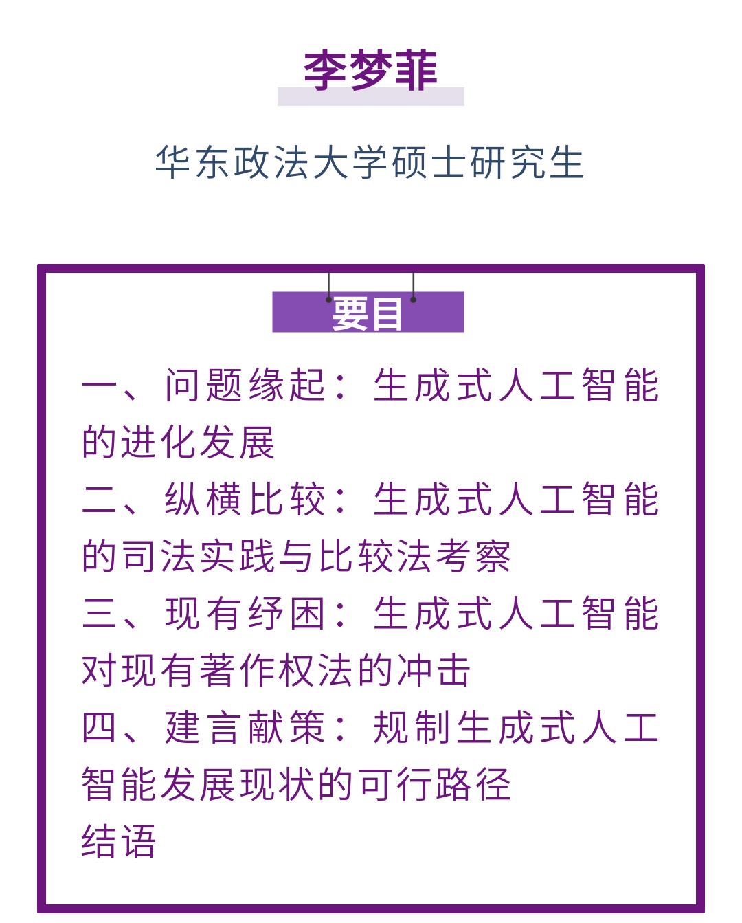 原标题:《李梦菲|生成式人工智能创作物在著作权领域的权利归属及保护路径》
