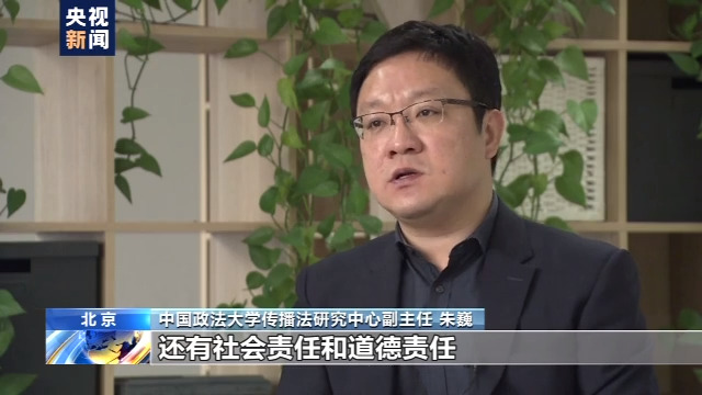 中国政法大学传播法研究中心副主任 朱巍:一个平台,它有很多的粉丝和用户。它除了承担法律责任之外,还有社会责任和道德责任。你的平台的用户量、日活量、粉丝量、主播量越多,你的社会责任和道德责任就应该越高。