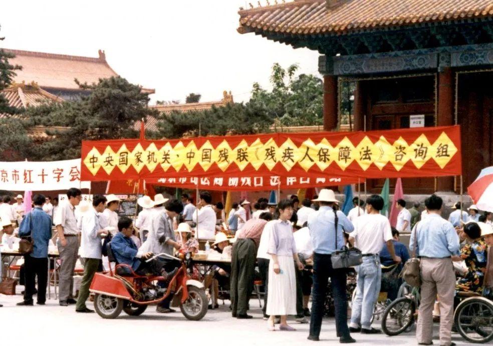 ▲1991年5月19日是第一次法定“全国助残日”。全国各地普遍开展了丰富多彩、注重实效的助残日活动。