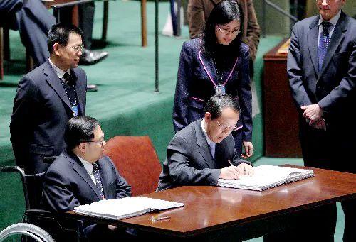 ▲2007年3月30日,中国常驻联合国代表王光亚在纽约联合国总部,代表中国签署《残疾人权利公约》。
