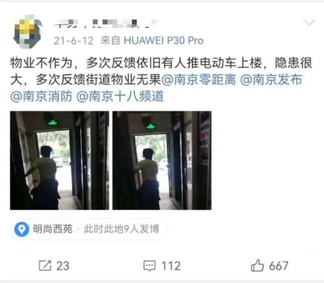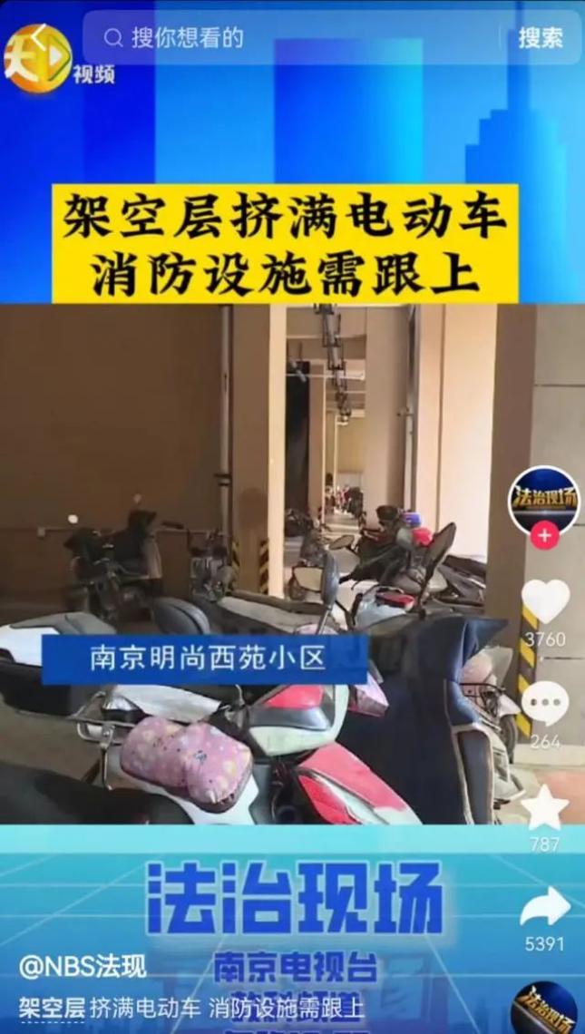 据南京广电《法治现场》栏目2022年4月报道,该小区2019年曾发生火灾,后来由于不少居民将电动车停放在架空层,也就是一楼单元门旁的廊道中,存在消防隐患,引发投诉和媒体关注。