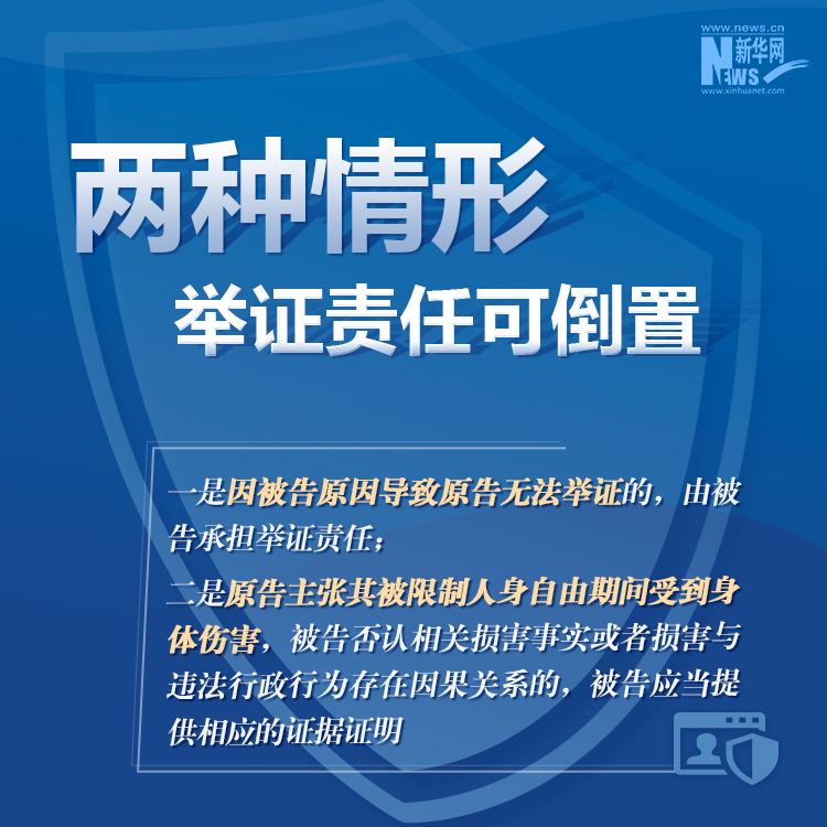 ——规定举证责任倒置的情形。一般情况下,原告请求行政赔偿应当对违法行政行为造成损害以及损害大小的事实承担举证责任。但是,以下两种情形,举证责任倒置:一是因被告原因导致原告无法举证的,由被告承担举证责任;二是原告主张其被限制人身自由期间受到身体伤害,被告否认相关损害事实或者损害与违法行政行为存在因果关系的,被告应当提供相应的证据证明。