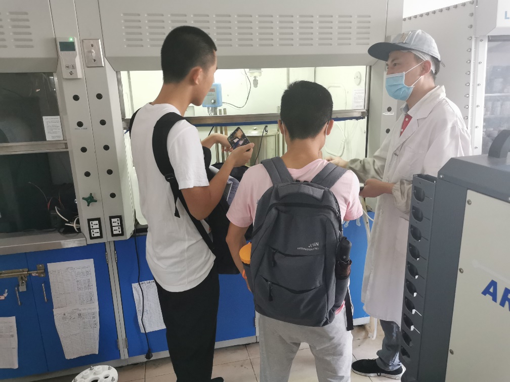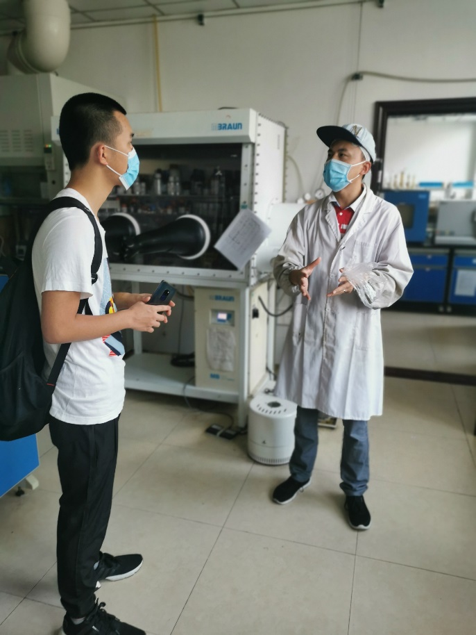 8月18日上午,实践队队员来到电化学研究所的实验室中与任学长就锂离子电池研究、使用和回收情况进行采访。
