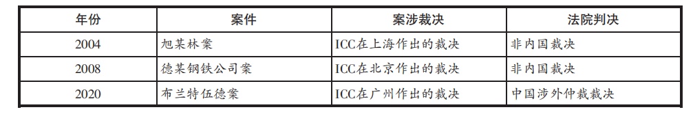从下表2可以清晰地看出,我国法院曾认定境外仲裁机构在中国内地所作“非内国裁决”,但晚近的司法实践则改判认定该等裁决性质为“中国涉外仲裁裁决”。本文认为,考虑到当前我国构建开放型经济新体制、建设自由贸易试验区、推进“一带一路”战略方针的时代背景,建设面向全球的亚太仲裁中心、促进涉外法律服务业发展、提升中国仲裁的国际性和公信力的长远利益,以及随着我国对外开放程度的提高和国际纠纷的增加,我国内地当事人日益广泛地参与境外仲裁机构仲裁的现实需求,允许境外仲裁机构在中国内地仲裁,并且将与国际通行标准相一致的仲裁地标准确立为认定仲裁裁决国籍的标准是大势所趋。笔者也同意此类仲裁裁决的国籍应当按照仲裁地标准判定为本国的涉外裁决。