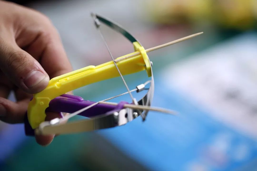 牙签弩,一种个头不大,杀伤力却极强的玩具,它可以击穿很多硬物,这一堪比“凶器”的危险玩具在一些地方的中小学比较流行。