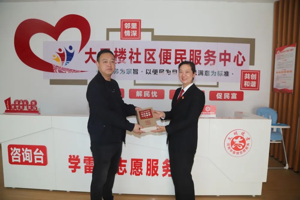 为进一步巩固落实“双报到”工作成果,结合党史学习教育“我为群众办实事”活动,以“党建+文明创建”为引领,聚焦群众“急难愁盼”问题,4月14日上午,新郑法院政治部副主任刘晓辉带队到辖区大吴楼社区开展“送法进社区”主题党日活动,推进共驻共建。