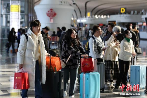 资料图:1月26日,旅客在北京大兴国际机场出行。