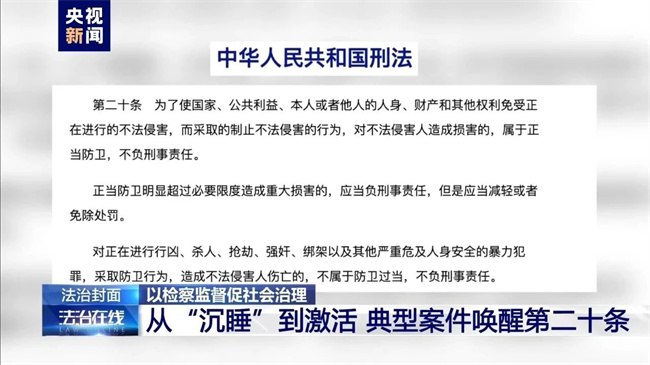 司法机关依法履职,一次次“激活”正当防卫条款的准确适用,鼓励公民依法捍卫自己的合法权利,鼓励社会上见义勇为的行为,这让沉睡多年的刑法第二十条发挥出其应有的力量。