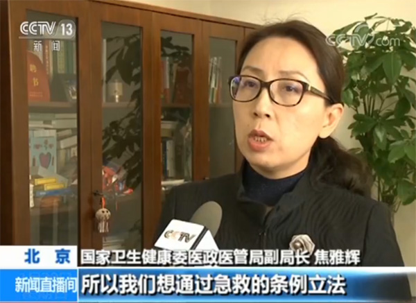 国家卫生健康委医政医管局副局长焦雅辉:对院前急救有一些领域,能够把它纳入到一些特殊领域来进行管理,比如急救车辆在执行急救任务的时候,一些高速公路还会收取费用,所以我们想通过急救的条例立法,来明确政府在这方面的一些职责。