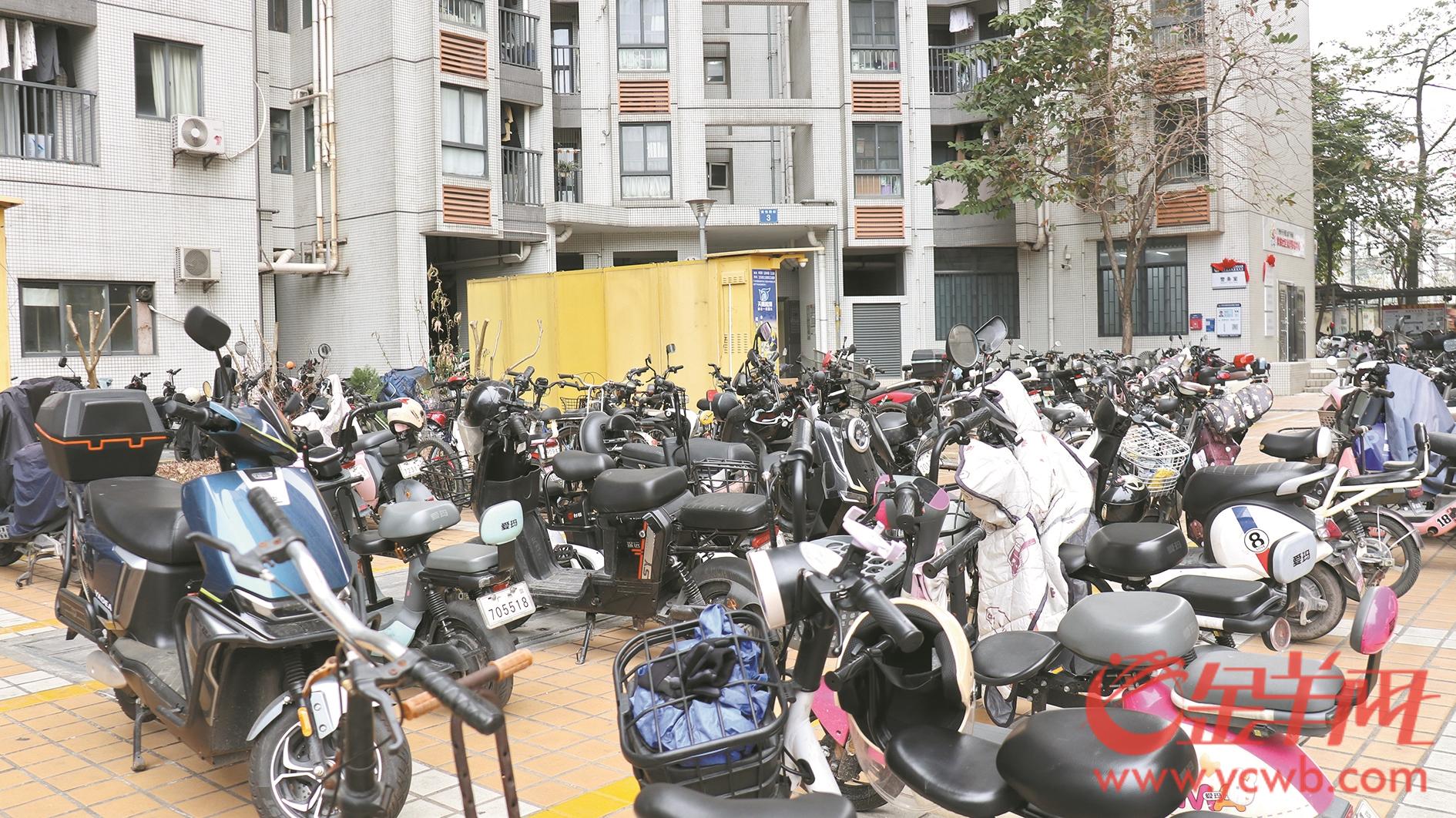 日前,记者走访多地发现,电动自行车乱停乱放问题较为常见。在广州市白云区棠溪村邻近南天西街的区域,记者看到该区域没有设置电动自行车停车棚,电动自行车集中停放于附近较空旷的地方,由于电动自行车数量非常多,出现了占用人行通道情况。