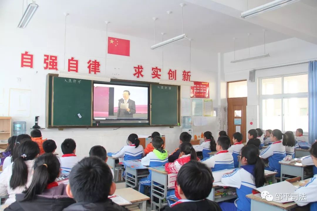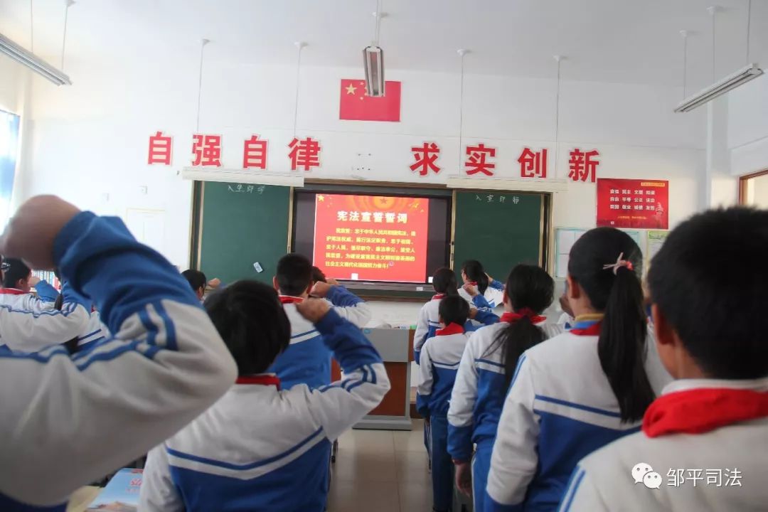12月4日,组织全校师生登陆教育部全国青少年普法网,收看网络直播,同步跟读宪法部分章节、条款,使学生用心体会宪法的庄严与神圣。