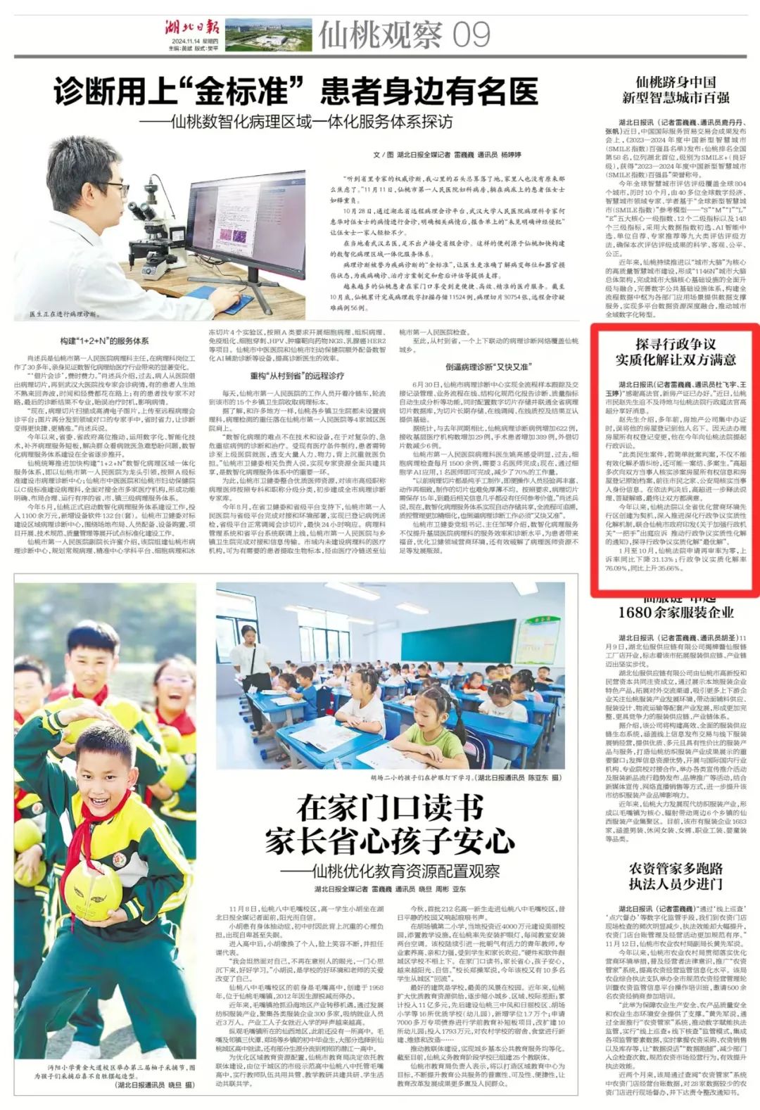 1月至10月,仙桃法院申请再审率为零,上诉率同比下降31.13%;行政争议实质化解率76.09%,同比上升35.66%。
