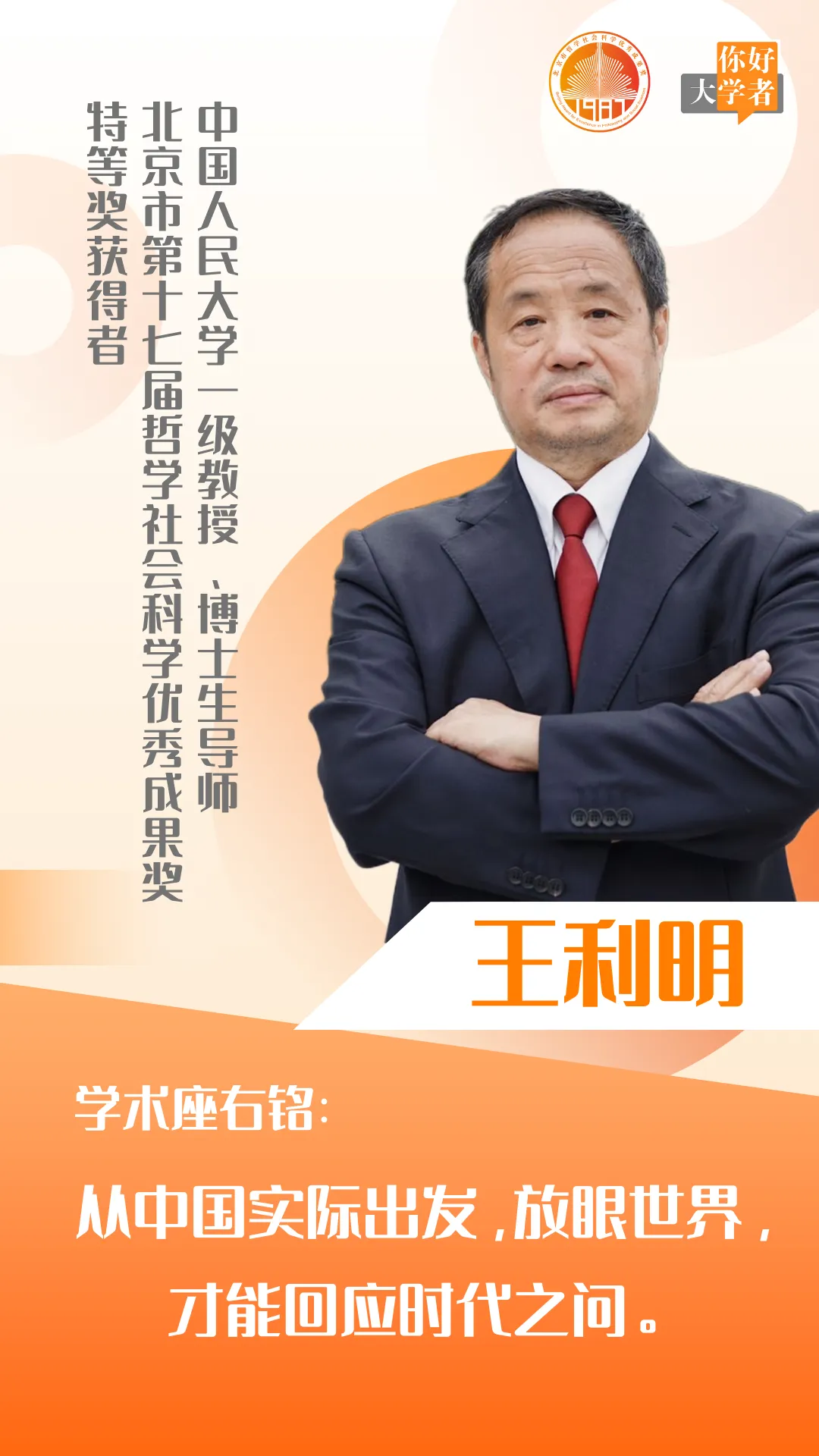 北京市社会科学界联合会、北京市哲学社会科学规划办公室策划、推出了“你好,大学者”系列融媒作品,邀您一同踏上寻访第十七届获奖学者的对话之旅。作品以“倾听心路历程,分享学术人生”为主题,通过富有温度的交流对话,让凝聚学者研究心血的学术成果、学者们的治学经历和治学精神得以传播,点亮心灯,影响更多的人。