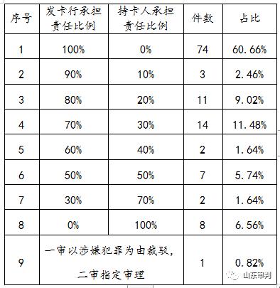 122件银行卡盗刷案件发卡行、持卡人承担责任比例